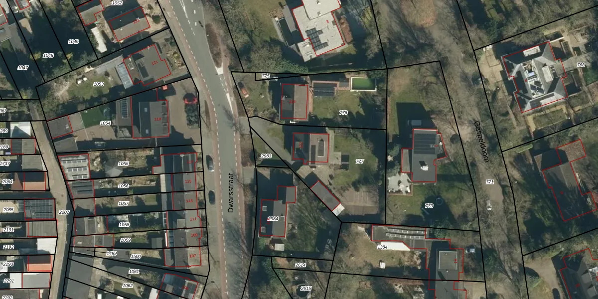 Dwarsstraat 122 is gelegen op kadastraal perceel GDP00F777. Deze kadastrale aanduiding is uniek en wordt gebruikt door het Kadaster om eigendomsrechten en andere zakelijke rechten vast te leggen. Het perceel maakt onderdeel uit van de kadastrale gemeente Geldrop.