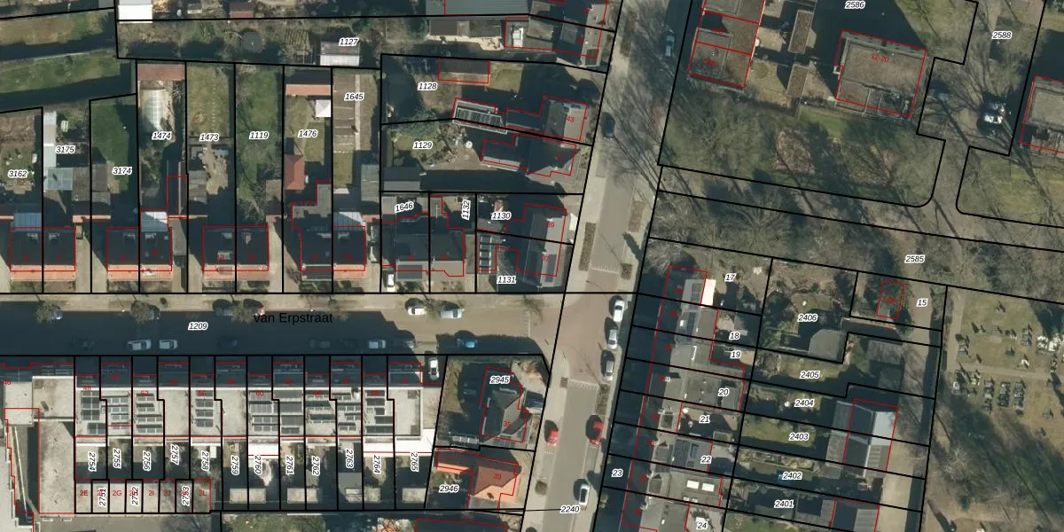 Gebruik de zoekbalk of klik op een perceel voor informatie over de adressen binnen dit perceel.