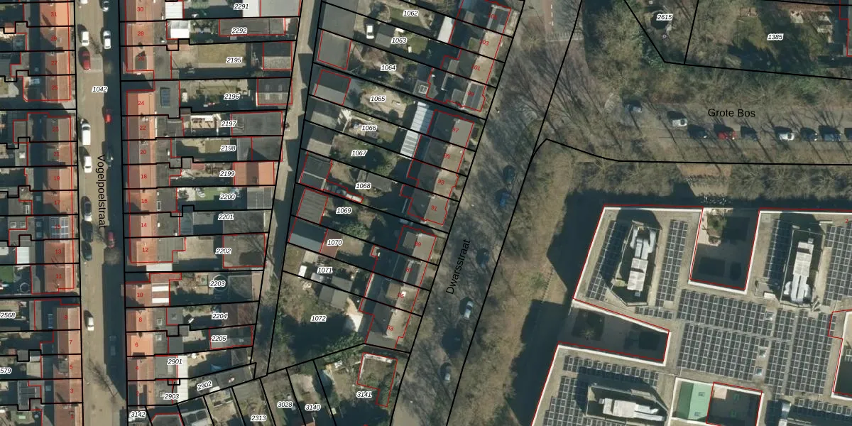 Dwarsstraat 91 is gelegen op kadastraal perceel GDP00F1068. Deze kadastrale aanduiding is uniek en wordt gebruikt door het Kadaster om eigendomsrechten en andere zakelijke rechten vast te leggen. Het perceel maakt onderdeel uit van de kadastrale gemeente Geldrop.
