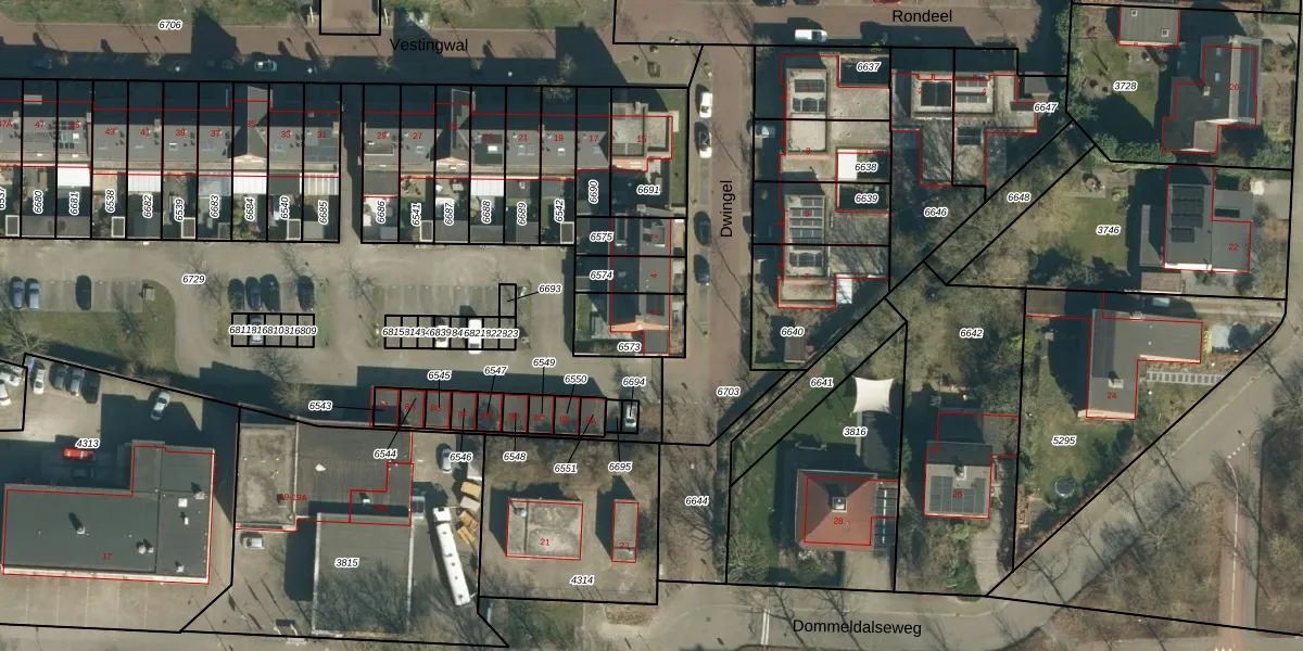 Het perceel waarop Dwingel 6 staat heeft een oppervlakte van 166 m². Dit is een middelgroot perceel. De perceeloppervlakte wordt geregistreerd door het Kadaster. Gedetailleerde informatie over de maten van dit perceel kunt u vinden in het rapport Kadastrale kaart met maatvoering van Dwingel 6.