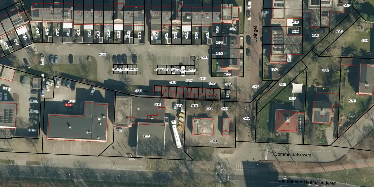 Het perceel waarop het adres ligt is GDP00-D-6547. De afkorting 'GDP00' staat voor kadastrale gemeente Geldrop. Het perceel is kleiner dan gemiddeld in Geldrop. Het perceel is 24 m² groot, terwijl het gemiddelde ligt op 1101,15 m². Het kleinste perceel in de kadastrale gemeente is 0 m² groot. De grootste perceeloppervlakte is 51,6 ha. Dit is het enige adres dat aanwezig is op het perceel. In de Basisregistratie Kadaster (BRK) werden de grenzen van het perceel geregistreerd op 15-04-2014.