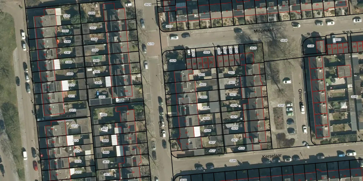Gebruik de zoekbalk of klik op een perceel voor informatie over de adressen binnen dit perceel.