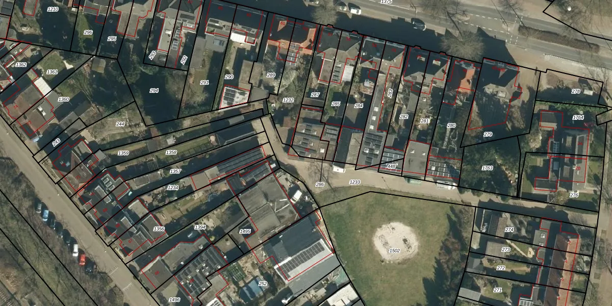 Gebruik de zoekbalk of klik op een perceel voor informatie over de adressen binnen dit perceel.