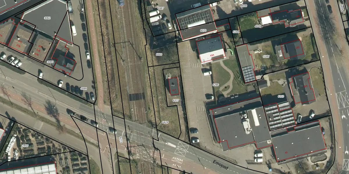 Emopad 41-T is gelegen op kadastraal perceel GDP00D6377. Deze kadastrale aanduiding is uniek en wordt gebruikt door het Kadaster om eigendomsrechten en andere zakelijke rechten vast te leggen. Het perceel maakt onderdeel uit van de kadastrale gemeente Geldrop.