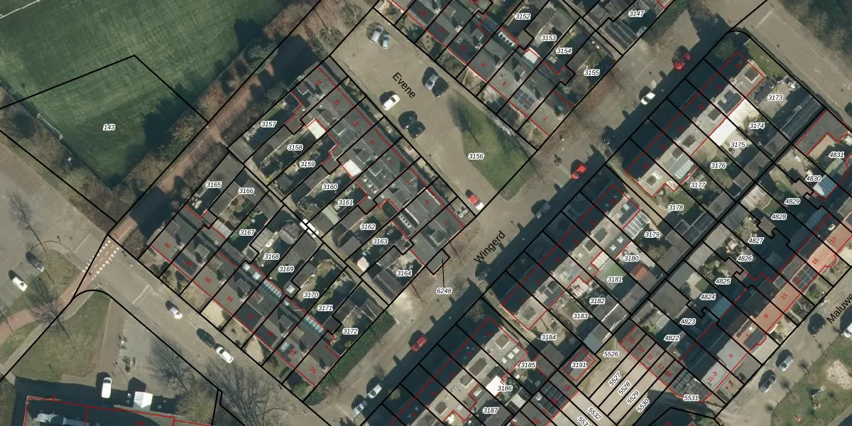 Het perceel waarop Evene 3 staat heeft een oppervlakte van 182 m². Dit is een middelgroot perceel. De perceeloppervlakte wordt geregistreerd door het Kadaster. Gedetailleerde informatie over de maten van dit perceel kunt u vinden in het rapport Kadastrale kaart met maatvoering van Evene 3.