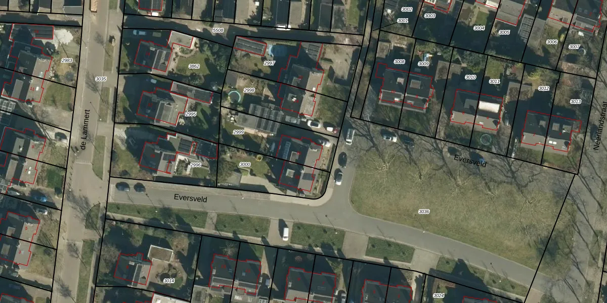 Het perceel waarop Eversveld 16 staat heeft een oppervlakte van 461 m². Dit is een groot perceel. De perceeloppervlakte wordt geregistreerd door het Kadaster. Gedetailleerde informatie over de maten van dit perceel kunt u vinden in het rapport Kadastrale kaart met maatvoering van Eversveld 16.