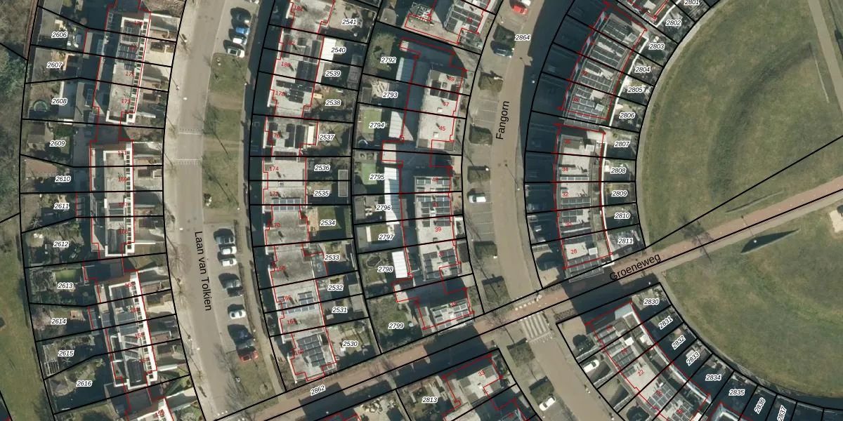 Gebruik de zoekbalk of klik op een perceel voor informatie over de adressen binnen dit perceel.