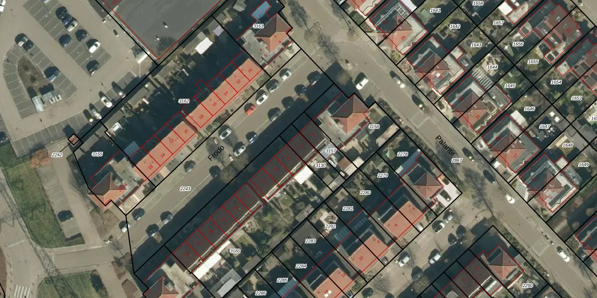 Het perceel waarop Frodo 11 staat heeft een oppervlakte van 155 m². Dit is een middelgroot perceel. De perceeloppervlakte wordt geregistreerd door het Kadaster. Gedetailleerde informatie over de maten van dit perceel kunt u vinden in het rapport Kadastrale kaart met maatvoering van Frodo 11.