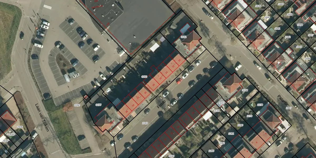 Frodo 16 is gelegen op kadastraal perceel GDP00E3162. Deze kadastrale aanduiding is uniek en wordt gebruikt door het Kadaster om eigendomsrechten en andere zakelijke rechten vast te leggen. Het perceel maakt onderdeel uit van de kadastrale gemeente Geldrop.