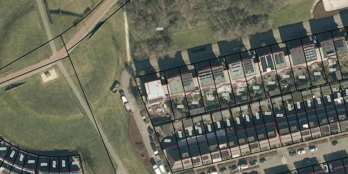 Het perceel waarop Gandalf 45 staat heeft een oppervlakte van 260 m². Dit is een middelgroot perceel. De perceeloppervlakte wordt geregistreerd door het Kadaster. Gedetailleerde informatie over de maten van dit perceel kunt u vinden in het rapport Kadastrale kaart met maatvoering van Gandalf 45.