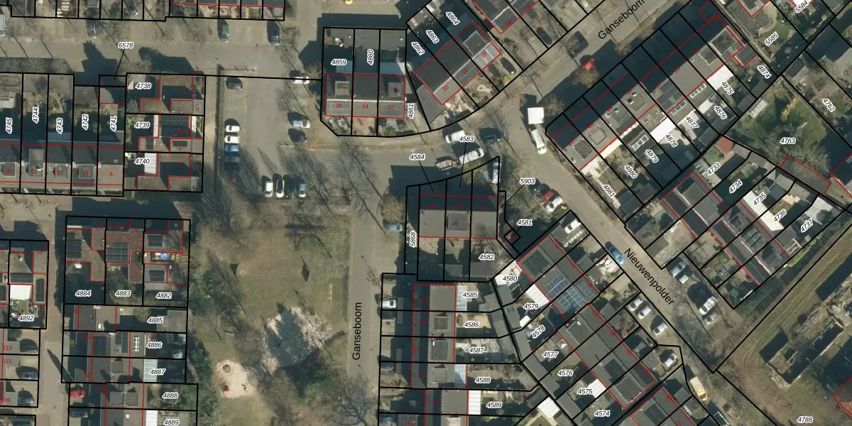 Gebruik de zoekbalk of klik op een perceel voor informatie over de adressen binnen dit perceel.