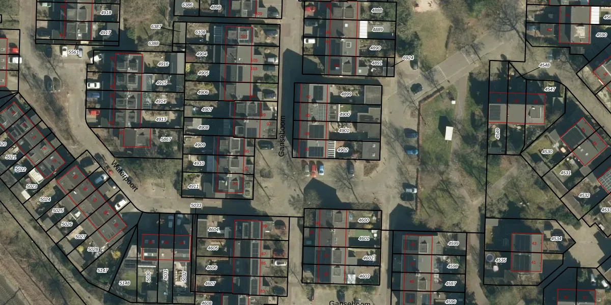 Gebruik de zoekbalk of klik op een perceel voor informatie over de adressen binnen dit perceel.