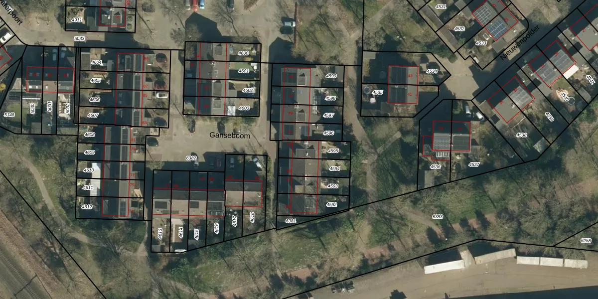 Ganseboom 53 is gelegen op kadastraal perceel GDP00D4595. Deze kadastrale aanduiding is uniek en wordt gebruikt door het Kadaster om eigendomsrechten en andere zakelijke rechten vast te leggen. Het perceel maakt onderdeel uit van de kadastrale gemeente Geldrop.