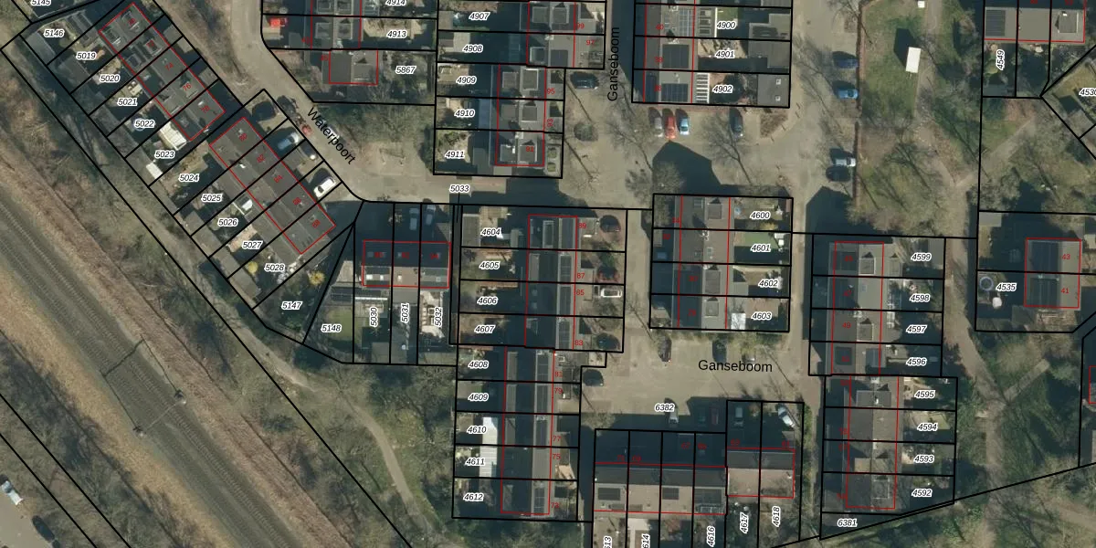 Het perceel waarop Ganseboom 87 staat heeft een oppervlakte van 180 m². Dit is een middelgroot perceel. De perceeloppervlakte wordt geregistreerd door het Kadaster. Gedetailleerde informatie over de maten van dit perceel kunt u vinden in het rapport Kadastrale kaart met maatvoering van Ganseboom 87.