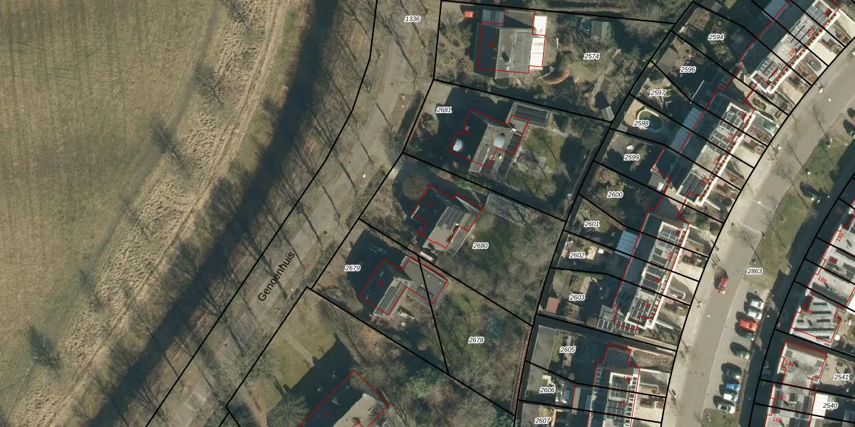 Het perceel waarop Genoenhuis 17 staat heeft een oppervlakte van 970 m². Dit is een groot perceel. De perceeloppervlakte wordt geregistreerd door het Kadaster. Gedetailleerde informatie over de maten van dit perceel kunt u vinden in het rapport Kadastrale kaart met maatvoering van Genoenhuis 17.