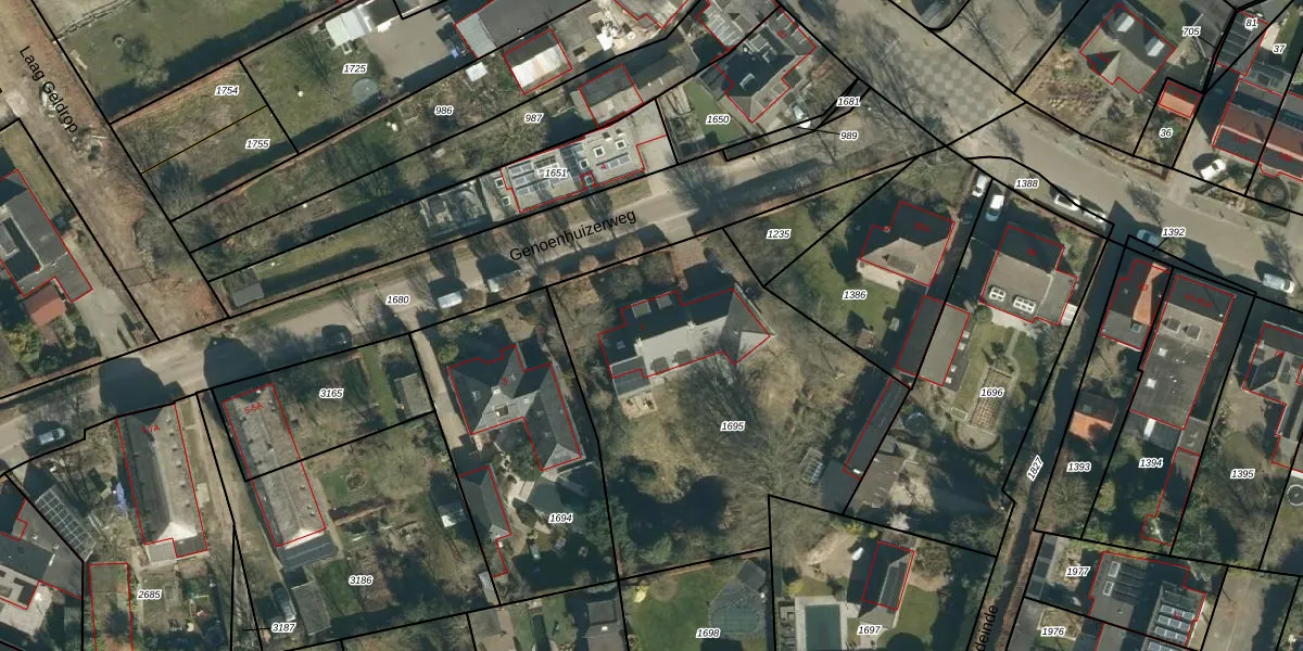 Genoenhuizerweg 1 is gelegen op kadastraal perceel GDP00E1695. Deze kadastrale aanduiding is uniek en wordt gebruikt door het Kadaster om eigendomsrechten en andere zakelijke rechten vast te leggen. Het perceel maakt onderdeel uit van de kadastrale gemeente Geldrop.