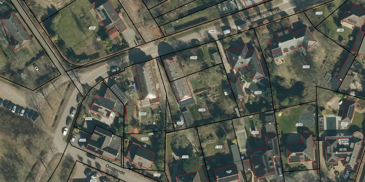 Het perceel waarop Genoenhuizerweg 5-A staat heeft een oppervlakte van 1076 m². Dit is een zeer groot perceel. De perceeloppervlakte wordt geregistreerd door het Kadaster. Gedetailleerde informatie over de maten van dit perceel kunt u vinden in het rapport Kadastrale kaart met maatvoering van Genoenhuizerweg 5-A.