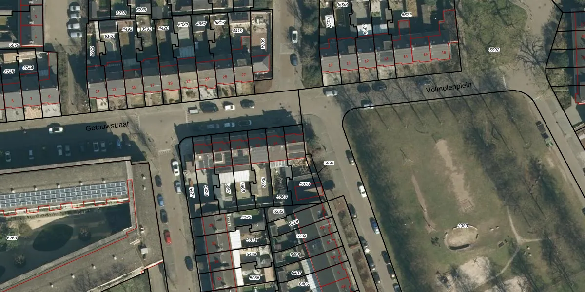 Getouwstraat 16 is gelegen op kadastraal perceel GDP00C5870. Deze kadastrale aanduiding is uniek en wordt gebruikt door het Kadaster om eigendomsrechten en andere zakelijke rechten vast te leggen. Het perceel maakt onderdeel uit van de kadastrale gemeente Geldrop.