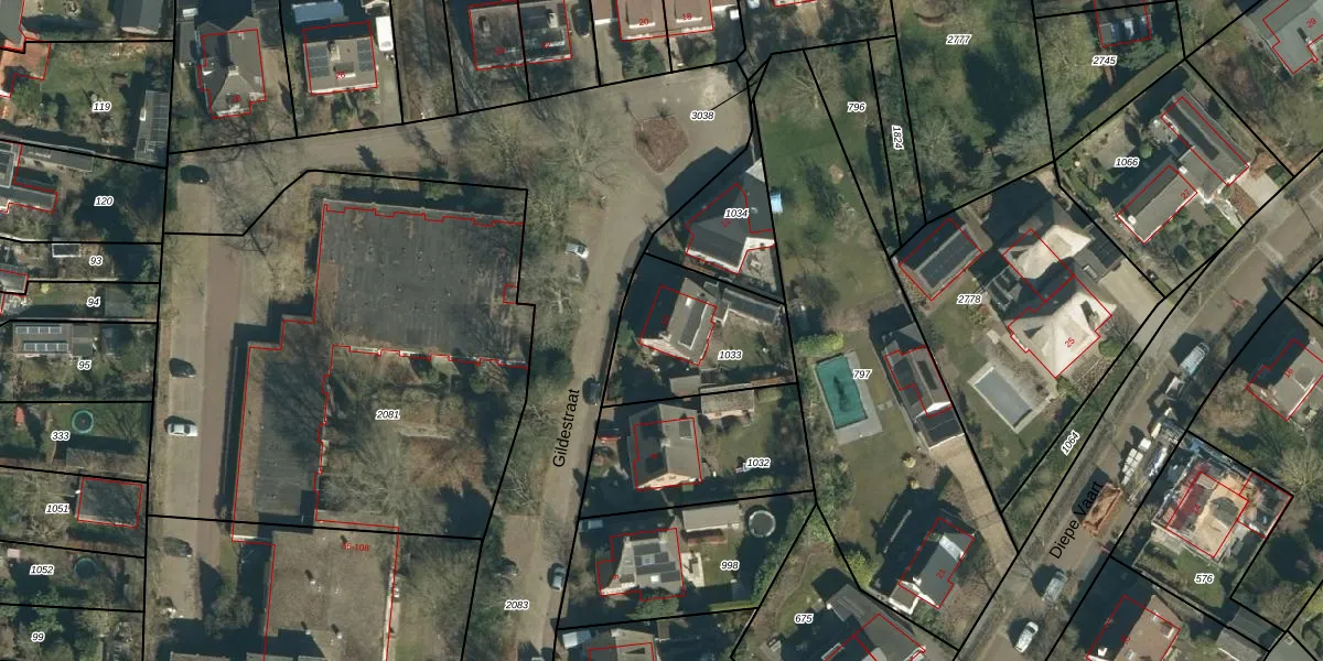Gildestraat 10 is gelegen op kadastraal perceel GDP00E1033. Deze kadastrale aanduiding is uniek en wordt gebruikt door het Kadaster om eigendomsrechten en andere zakelijke rechten vast te leggen. Het perceel maakt onderdeel uit van de kadastrale gemeente Geldrop.