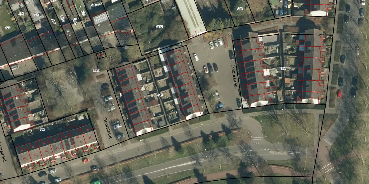 Goorstraat 76 is gelegen op kadastraal perceel GDP00F945. Deze kadastrale aanduiding is uniek en wordt gebruikt door het Kadaster om eigendomsrechten en andere zakelijke rechten vast te leggen. Het perceel maakt onderdeel uit van de kadastrale gemeente Geldrop.