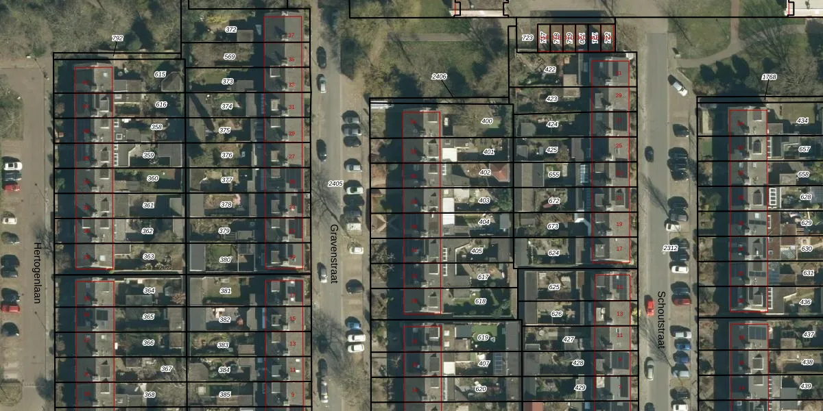 Gebruik de zoekbalk of klik op een perceel voor informatie over de adressen binnen dit perceel.