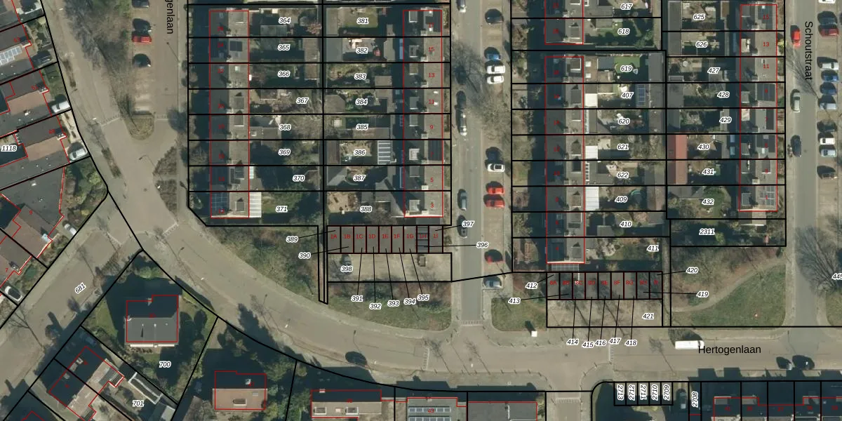 Het adres ligt op het perceel GDP00-E-388, dat zich in de kadastrale gemeente Geldrop bevindt. Het perceel is kleiner dan gemiddeld in Geldrop. Het perceel is 268 m² groot, terwijl het gemiddelde ligt op 1101,15 m². Het grootste perceel in de kadastrale gemeente is 51,6 ha. Het kleinste perceel heeft een oppervlakte van 0 m². Op het perceel bevinden zich geen andere adressen. De huidige grenzen van het perceel zijn digitaal in de Basisregistratie Kadaster (BRK) geregistreerd op 09-06-2009.