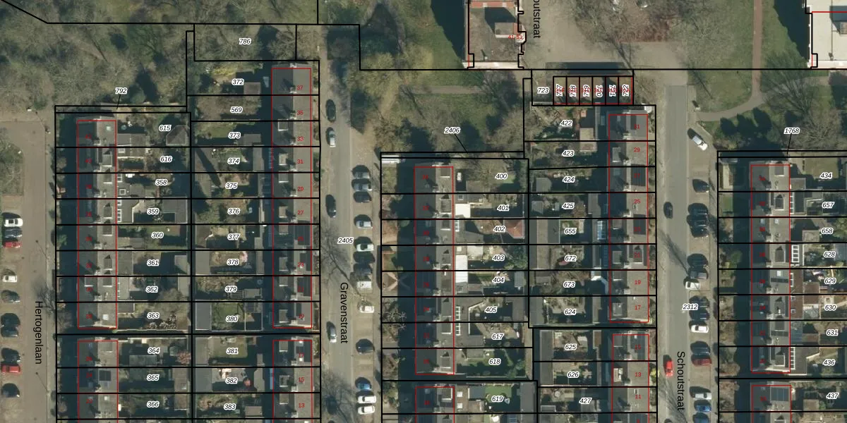 Gebruik de zoekbalk of klik op een perceel voor informatie over de adressen binnen dit perceel.
