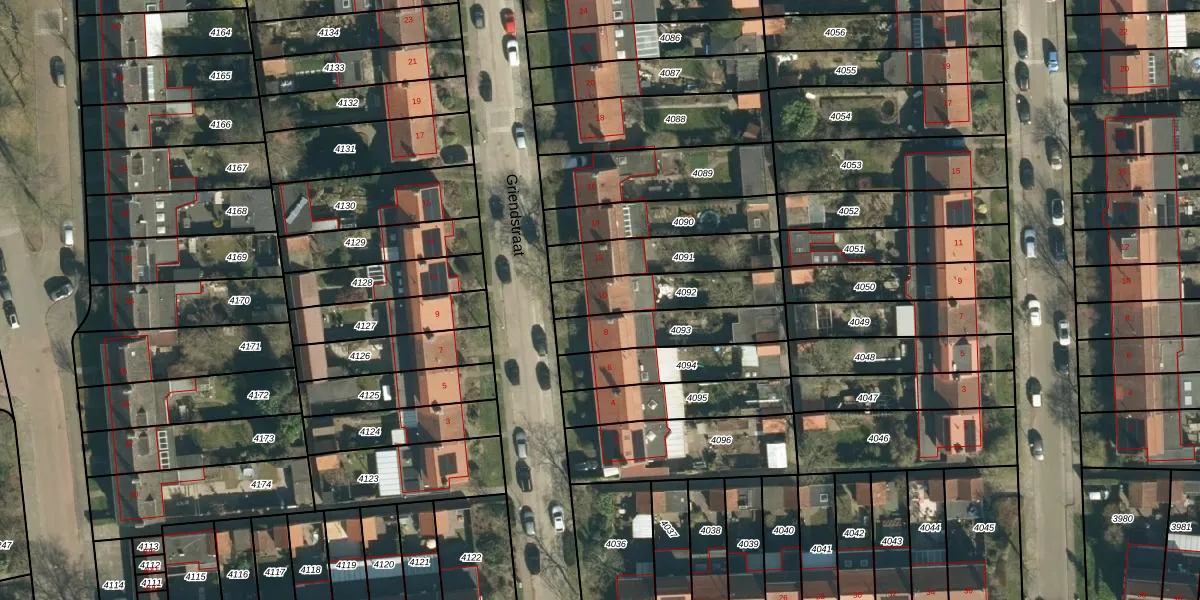 Griendstraat 10 is gelegen op kadastraal perceel GDP00D4092. Deze kadastrale aanduiding is uniek en wordt gebruikt door het Kadaster om eigendomsrechten en andere zakelijke rechten vast te leggen. Het perceel maakt onderdeel uit van de kadastrale gemeente Geldrop.