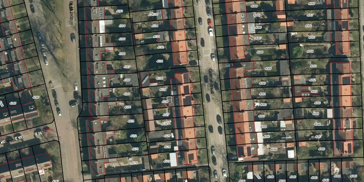 Griendstraat 13 is gelegen op kadastraal perceel GDP00D4129. Deze kadastrale aanduiding is uniek en wordt gebruikt door het Kadaster om eigendomsrechten en andere zakelijke rechten vast te leggen. Het perceel maakt onderdeel uit van de kadastrale gemeente Geldrop.