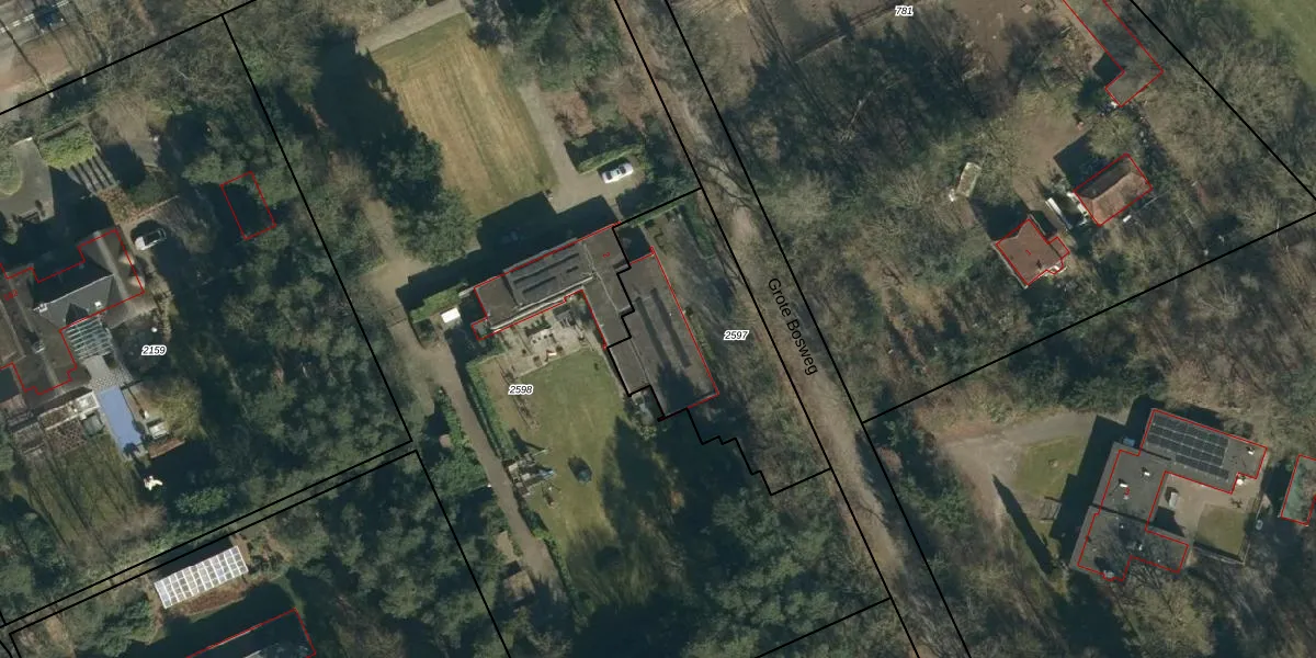 Grote Bosweg 4 is gelegen op kadastraal perceel GDP00F2597. Deze kadastrale aanduiding is uniek en wordt gebruikt door het Kadaster om eigendomsrechten en andere zakelijke rechten vast te leggen. Het perceel maakt onderdeel uit van de kadastrale gemeente Geldrop.
