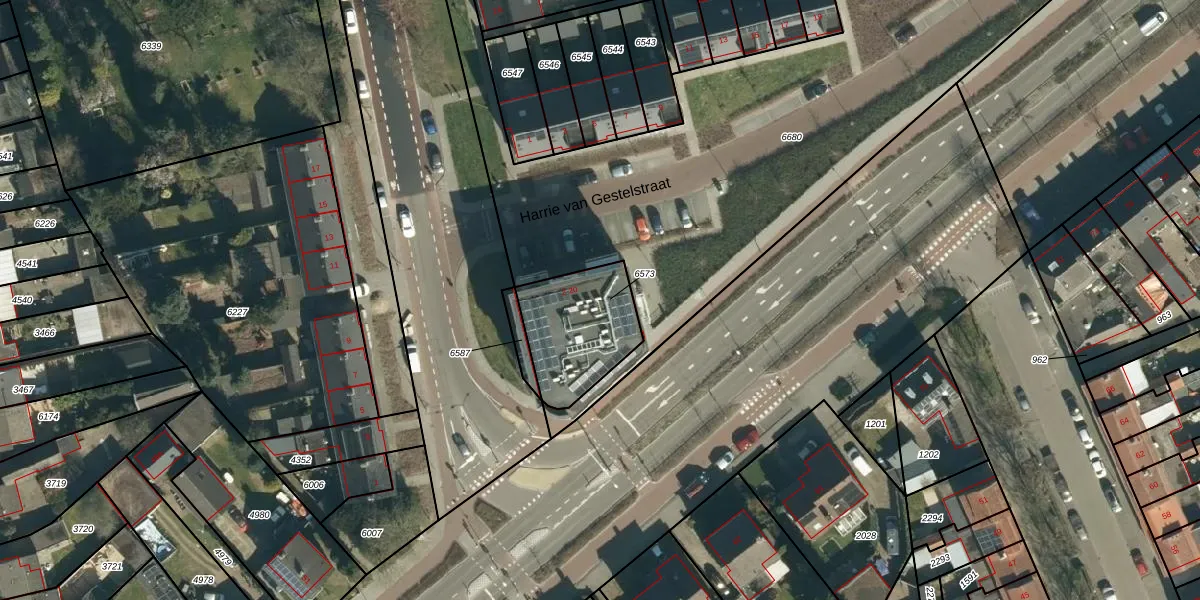 Harrie van Gestelstraat 18 is gelegen op kadastraal perceel GDP00C6573. Deze kadastrale aanduiding is uniek en wordt gebruikt door het Kadaster om eigendomsrechten en andere zakelijke rechten vast te leggen. Het perceel maakt onderdeel uit van de kadastrale gemeente Geldrop.