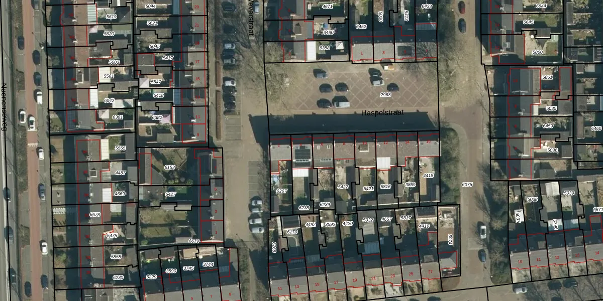 Gebruik de zoekbalk of klik op een perceel voor informatie over de adressen binnen dit perceel.