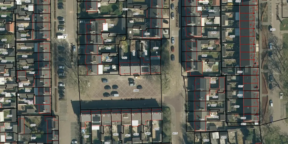 Haspelstraat 5 is gelegen op kadastraal perceel GDP00C5413. Deze kadastrale aanduiding is uniek en wordt gebruikt door het Kadaster om eigendomsrechten en andere zakelijke rechten vast te leggen. Het perceel maakt onderdeel uit van de kadastrale gemeente Geldrop.