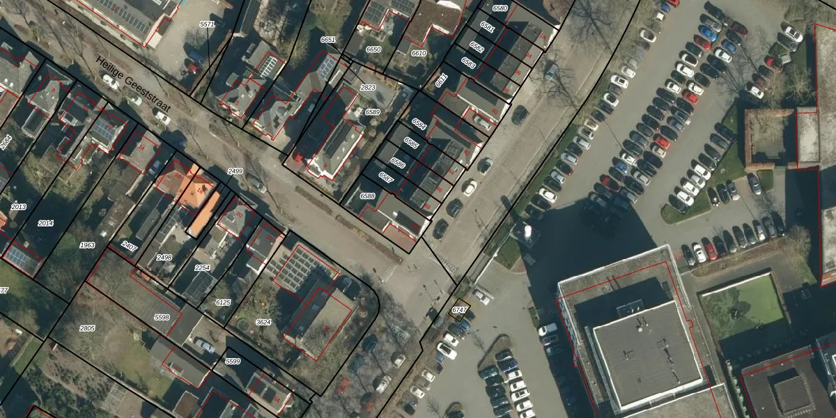 Gebruik de zoekbalk of klik op een perceel voor informatie over de adressen binnen dit perceel.