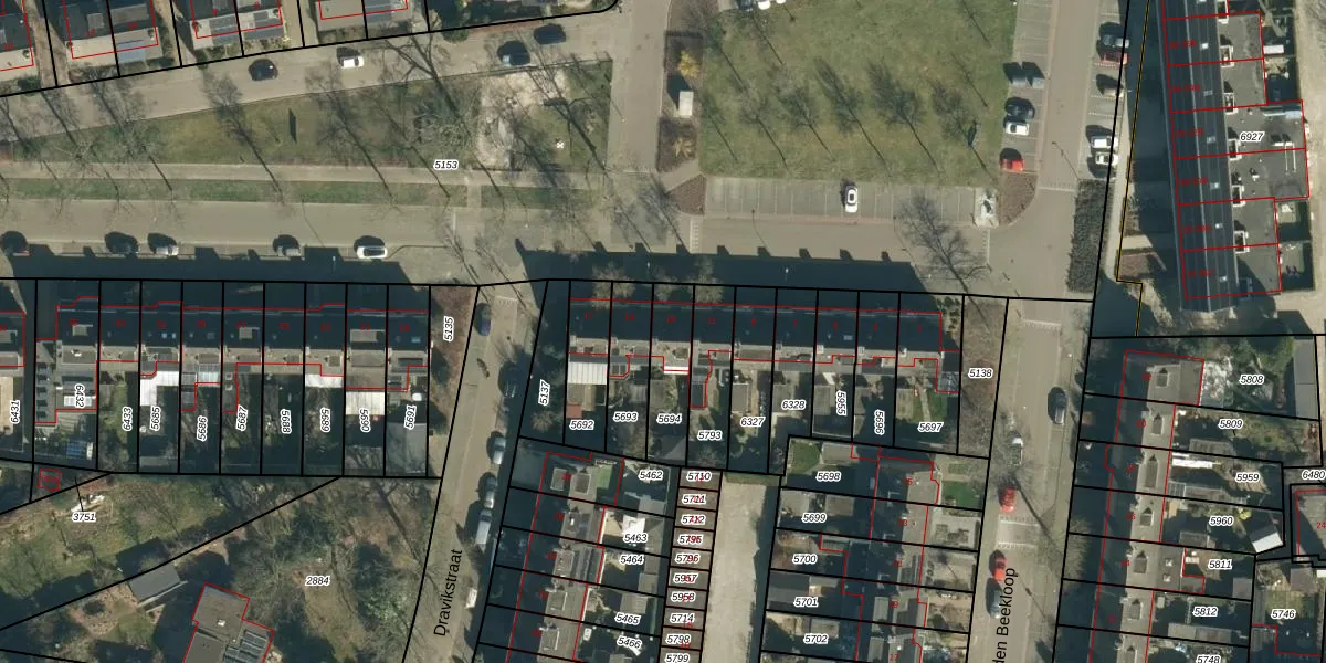 Gebruik de zoekbalk of klik op een perceel voor informatie over de adressen binnen dit perceel.