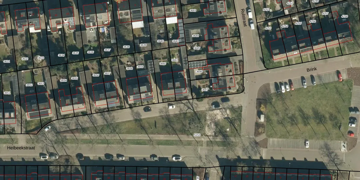 Gebruik de zoekbalk of klik op een perceel voor informatie over de adressen binnen dit perceel.