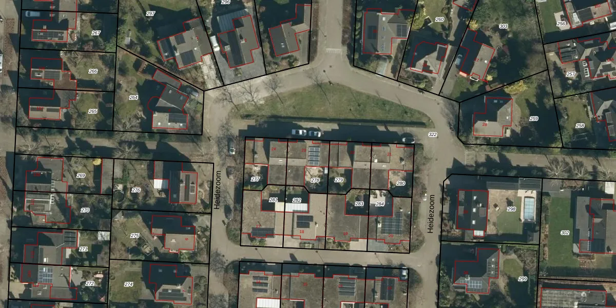 Heidezoom 23 is gelegen op kadastraal perceel GDP00G278. Deze kadastrale aanduiding is uniek en wordt gebruikt door het Kadaster om eigendomsrechten en andere zakelijke rechten vast te leggen. Het perceel maakt onderdeel uit van de kadastrale gemeente Geldrop.
