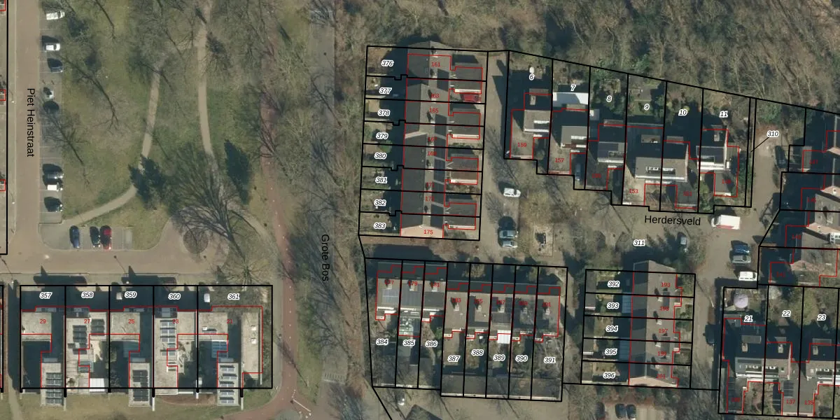Herdersveld 173 is gelegen op kadastraal perceel GDP00G382. Deze kadastrale aanduiding is uniek en wordt gebruikt door het Kadaster om eigendomsrechten en andere zakelijke rechten vast te leggen. Het perceel maakt onderdeel uit van de kadastrale gemeente Geldrop.
