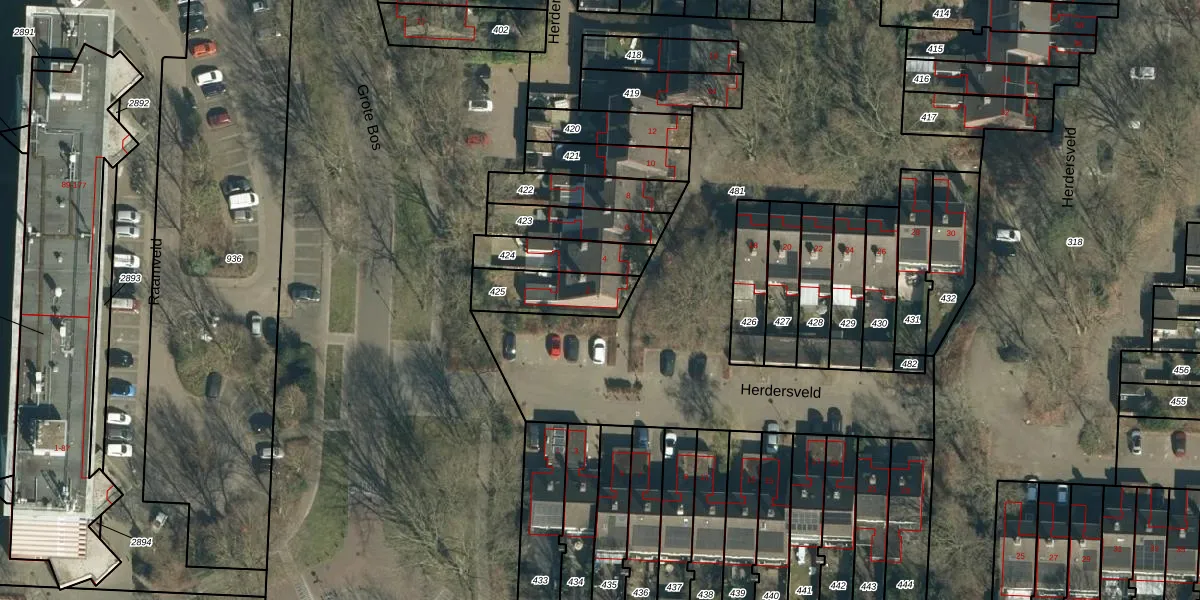 Gebruik de zoekbalk of klik op een perceel voor informatie over de adressen binnen dit perceel.