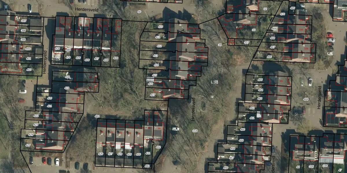 Herdersveld 34 is gelegen op kadastraal perceel GDP00G416. Deze kadastrale aanduiding is uniek en wordt gebruikt door het Kadaster om eigendomsrechten en andere zakelijke rechten vast te leggen. Het perceel maakt onderdeel uit van de kadastrale gemeente Geldrop.