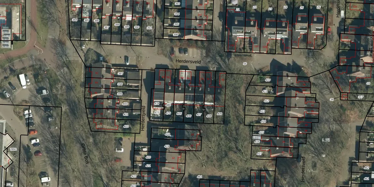 Herdersveld 54 is gelegen op kadastraal perceel GDP00G406. Deze kadastrale aanduiding is uniek en wordt gebruikt door het Kadaster om eigendomsrechten en andere zakelijke rechten vast te leggen. Het perceel maakt onderdeel uit van de kadastrale gemeente Geldrop.