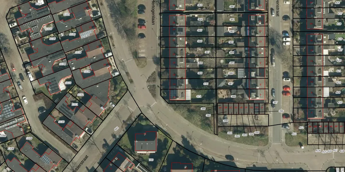 Gebruik de zoekbalk of klik op een perceel voor informatie over de adressen binnen dit perceel.
