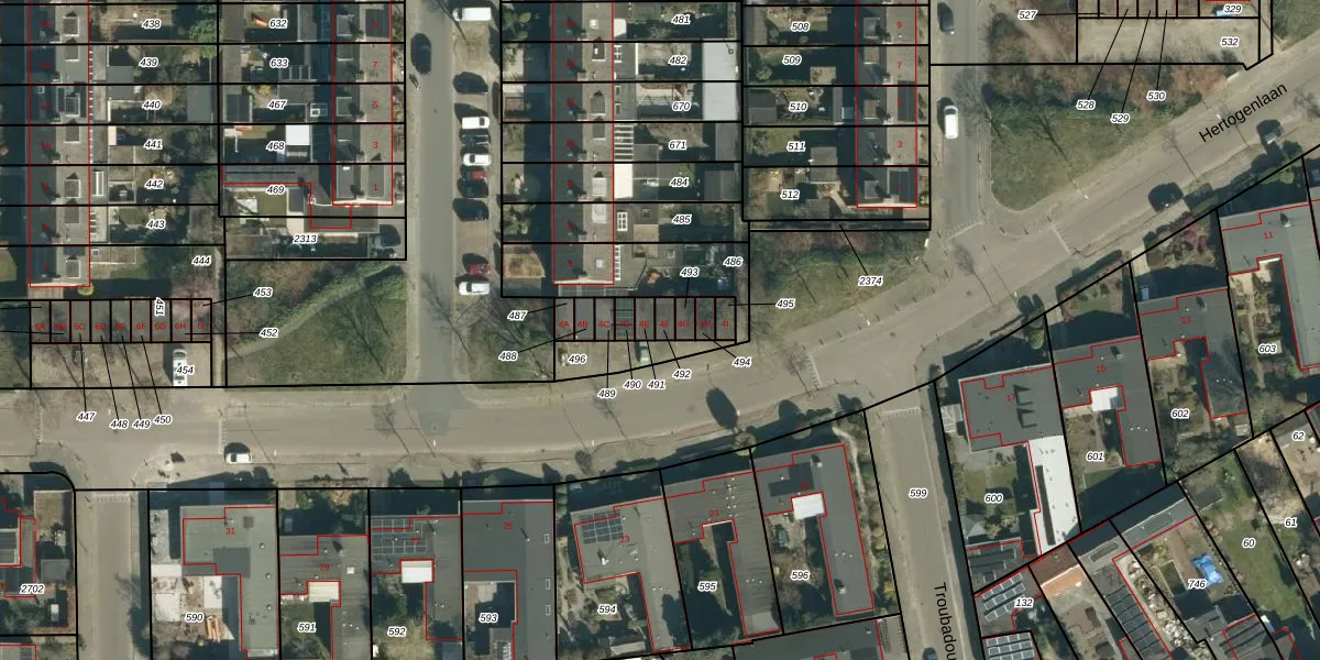 Hertogenlaan 4-F is gelegen op kadastraal perceel GDP00E492. Deze kadastrale aanduiding is uniek en wordt gebruikt door het Kadaster om eigendomsrechten en andere zakelijke rechten vast te leggen. Het perceel maakt onderdeel uit van de kadastrale gemeente Geldrop.