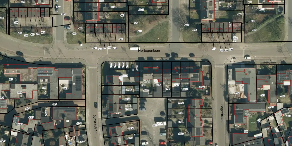 Hertogenlaan 41 is gelegen op kadastraal perceel GDP00E2707. Deze kadastrale aanduiding is uniek en wordt gebruikt door het Kadaster om eigendomsrechten en andere zakelijke rechten vast te leggen. Het perceel maakt onderdeel uit van de kadastrale gemeente Geldrop.