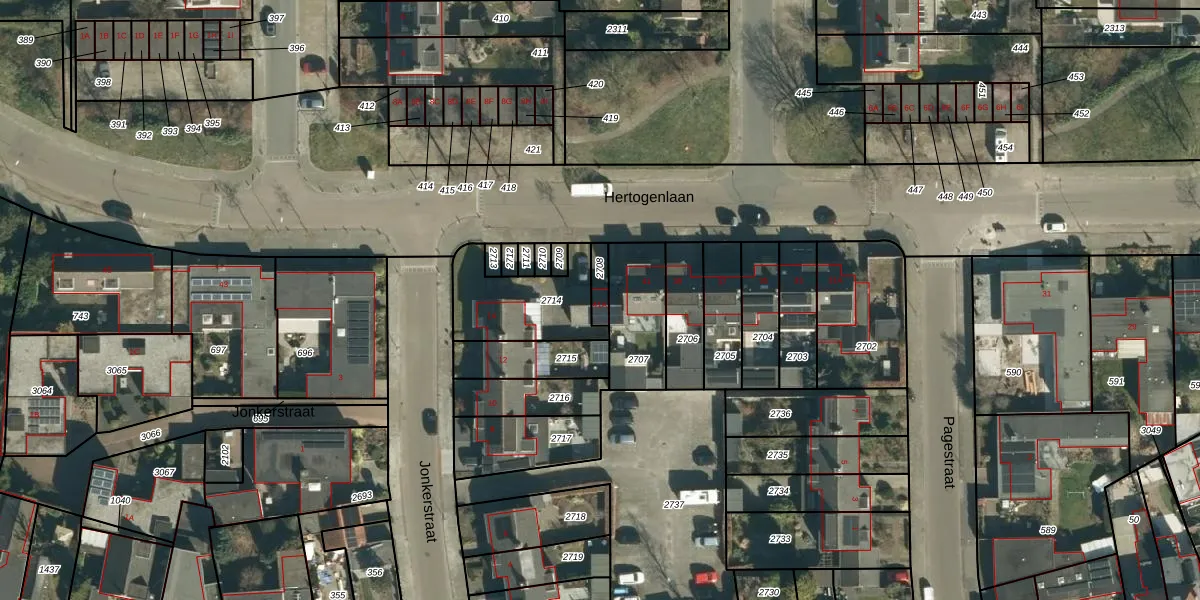 Hertogenlaan 41-A is gelegen op kadastraal perceel GDP00E2708. Deze kadastrale aanduiding is uniek en wordt gebruikt door het Kadaster om eigendomsrechten en andere zakelijke rechten vast te leggen. Het perceel maakt onderdeel uit van de kadastrale gemeente Geldrop.