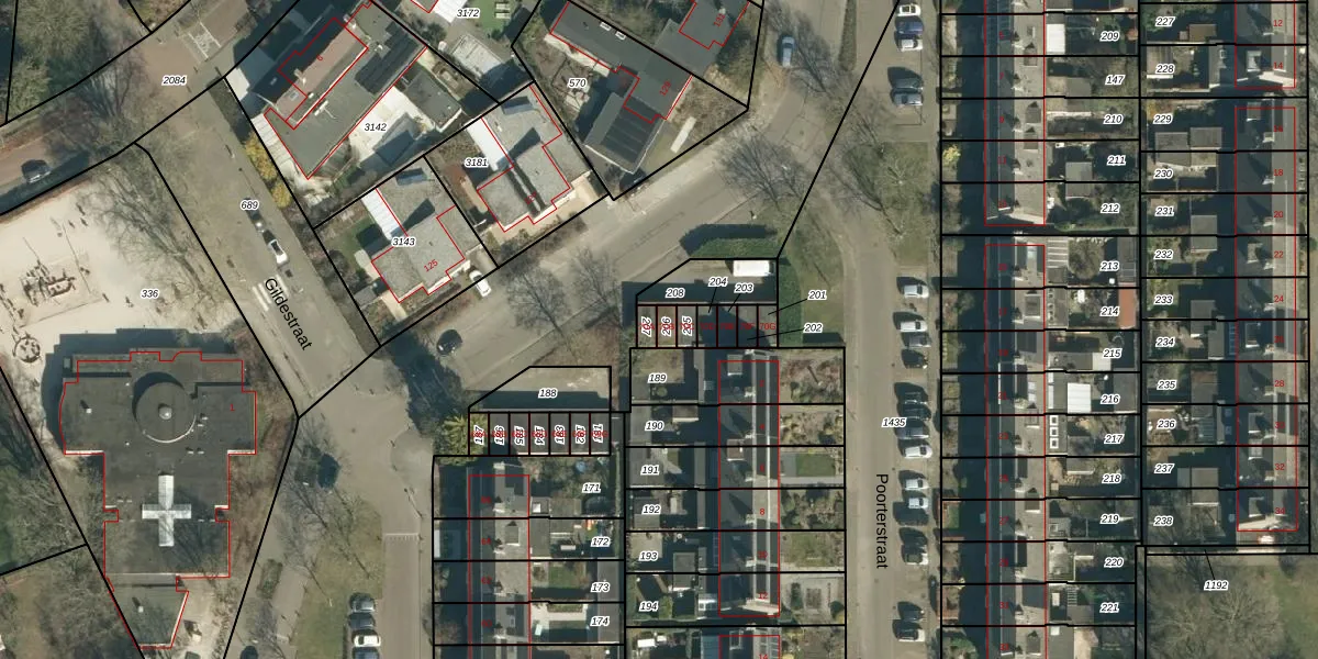 Gebruik de zoekbalk of klik op een perceel voor informatie over de adressen binnen dit perceel.