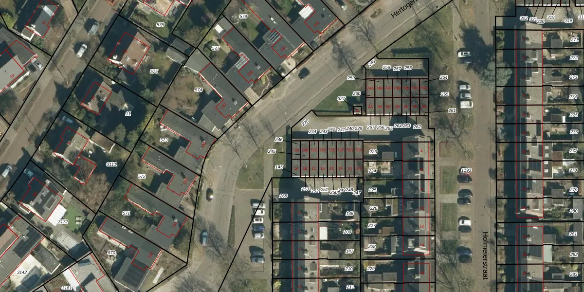Hertogenlaan 72-A is gelegen op kadastraal perceel GDP00E246. Deze kadastrale aanduiding is uniek en wordt gebruikt door het Kadaster om eigendomsrechten en andere zakelijke rechten vast te leggen. Het perceel maakt onderdeel uit van de kadastrale gemeente Geldrop.