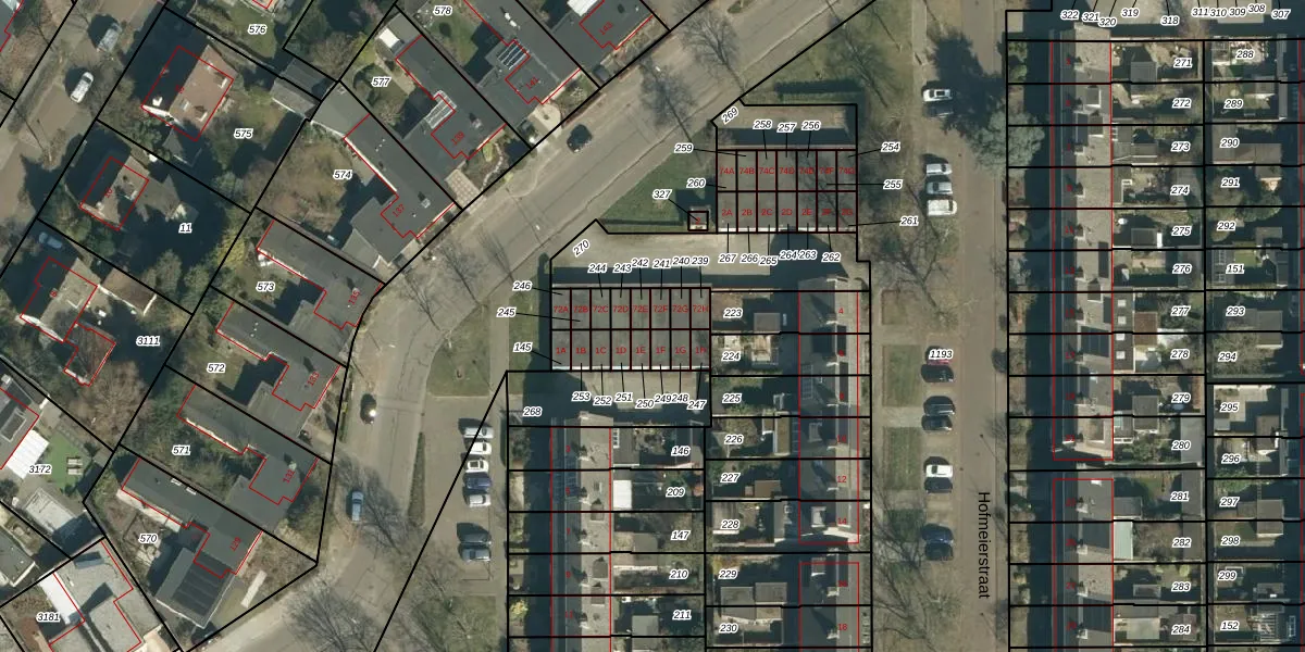 Gebruik de zoekbalk of klik op een perceel voor informatie over de adressen binnen dit perceel.