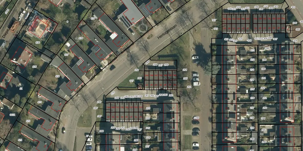 Gebruik de zoekbalk of klik op een perceel voor informatie over de adressen binnen dit perceel.