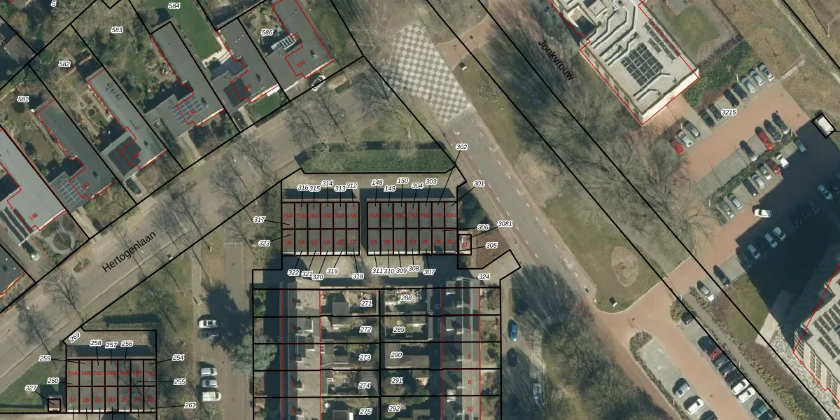 Het perceel waarop Hertogenlaan 78-E staat heeft een oppervlakte van 19 m². Dit is een klein perceel. De perceeloppervlakte wordt geregistreerd door het Kadaster. Gedetailleerde informatie over de maten van dit perceel kunt u vinden in het rapport Kadastrale kaart met maatvoering van Hertogenlaan 78-E.